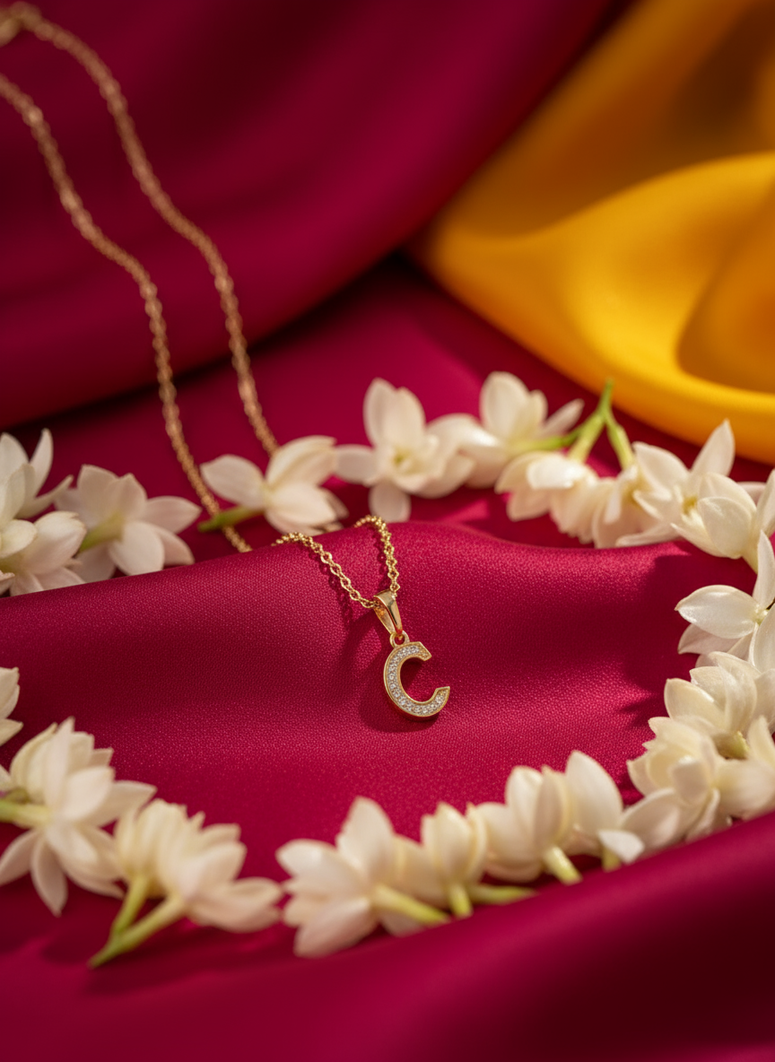 Minimal alphabet “C” pendant chain crafted for elegant everyday styling.
