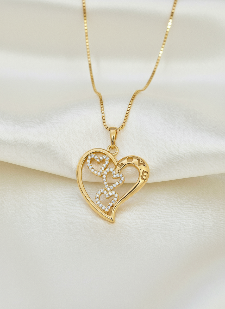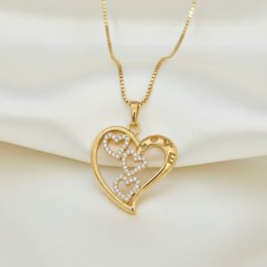 Minimal heart pendant necklace with crystal detailing and elegant gold finish.
